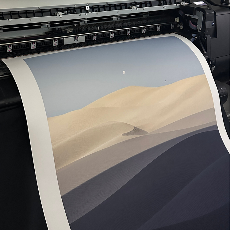 Imprimimos con 12 tintas pigmentadas sobre papeles Fine Art libres de ácido, sin blanqueadores, en líneas de alta conservación. Operamos con perfiles ICC a la medida por papel e impresora para asegurar coherencia entre series y reimpresiones.